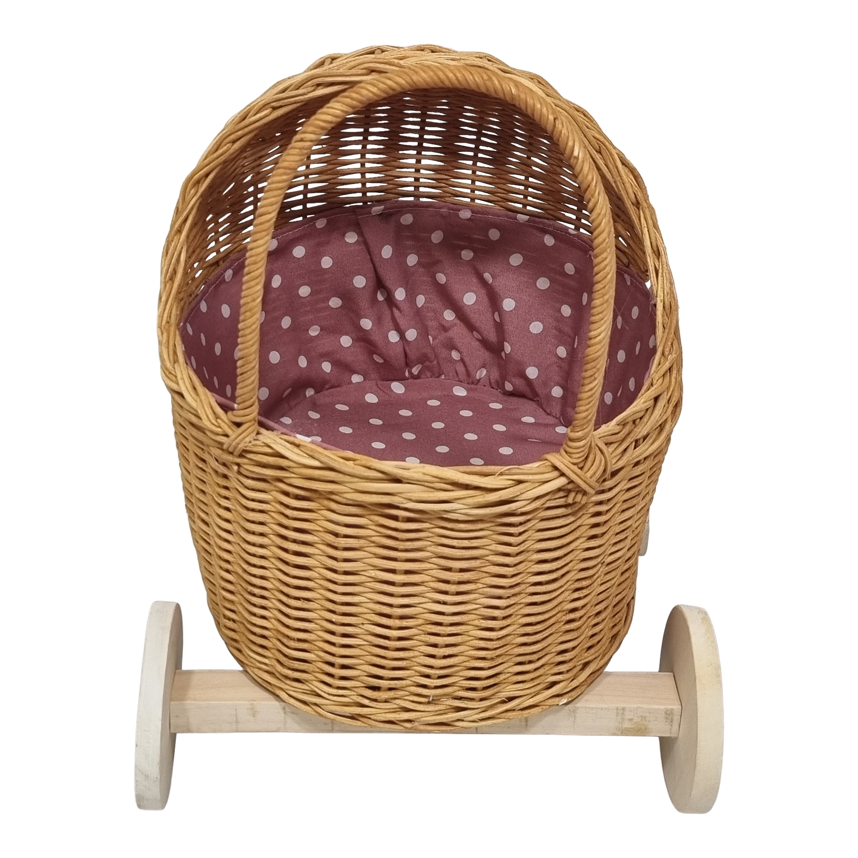 Mini Rieten Poppenwagen inclusief bekleding Aanbieding